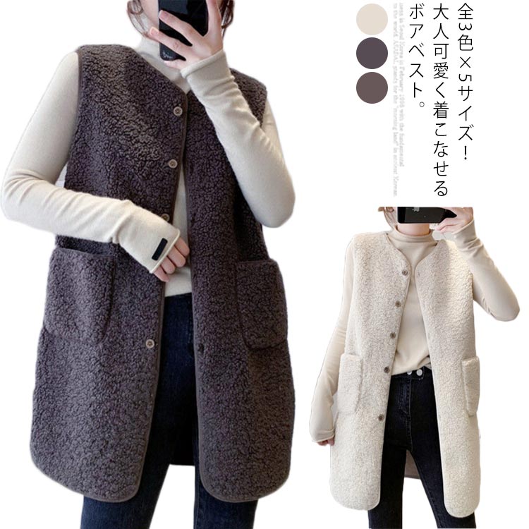 全3色5サイズ!ロングボアベストレディースロングベストボアジャケットノースリーブボアアウタージャケットフェイクファーふわふわもこもこ暖かい羽織り秋冬