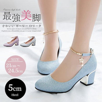 3colors パンプス ハイヒール キラキラ 太いヒール 小さいサイズ ストラップ 女の子 パープル シルバー ブルー 結婚式 ピアノ発表会 可愛い パーティー シューズ 靴 発表会 演奏会 演出