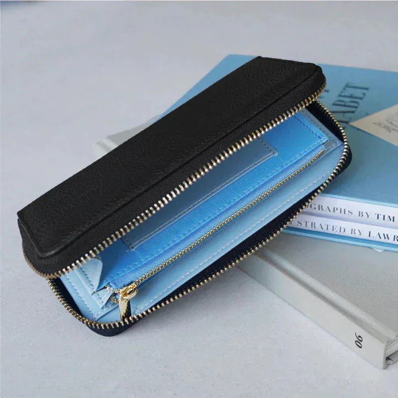 ファスナーもとてもスムーズで黒い財布なのに中がアイスブルーなのが気に入ってます。 -