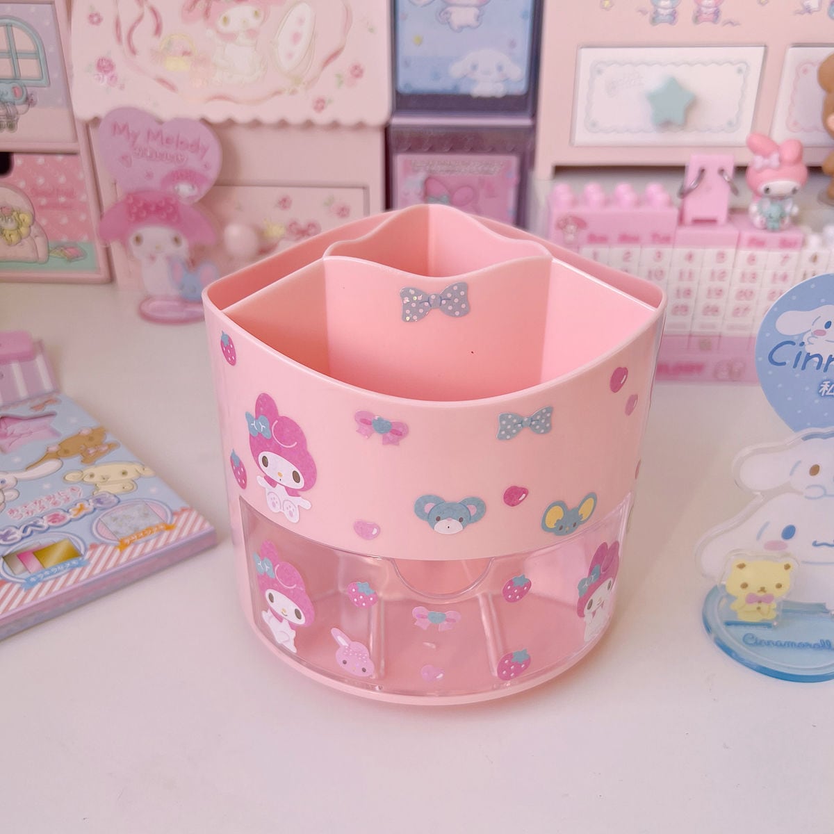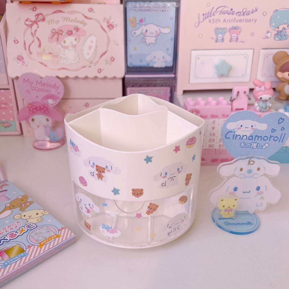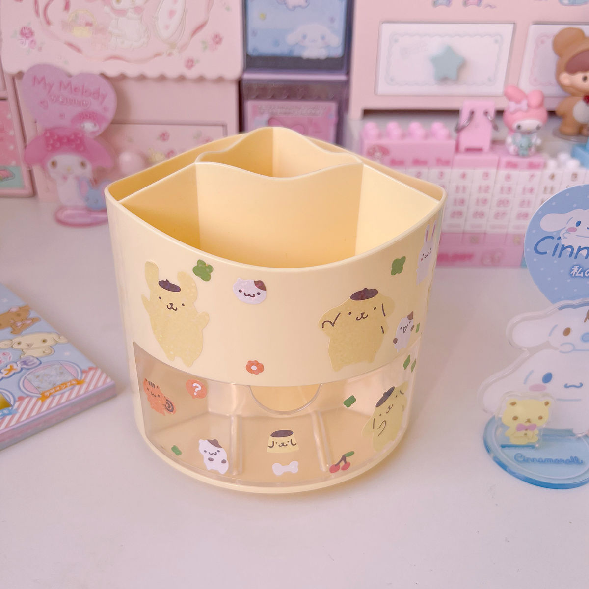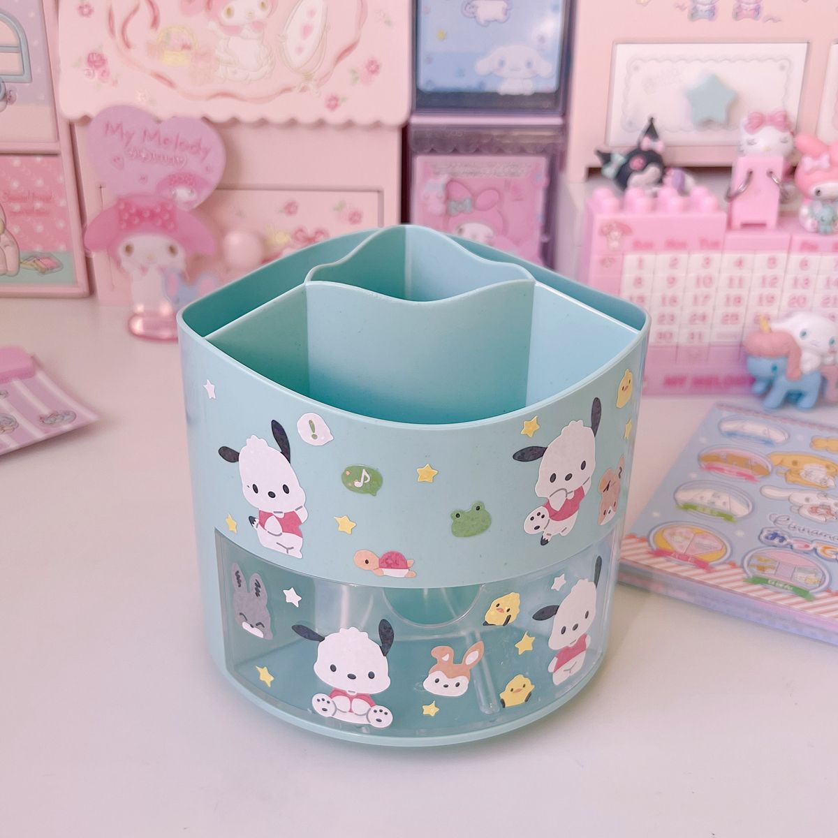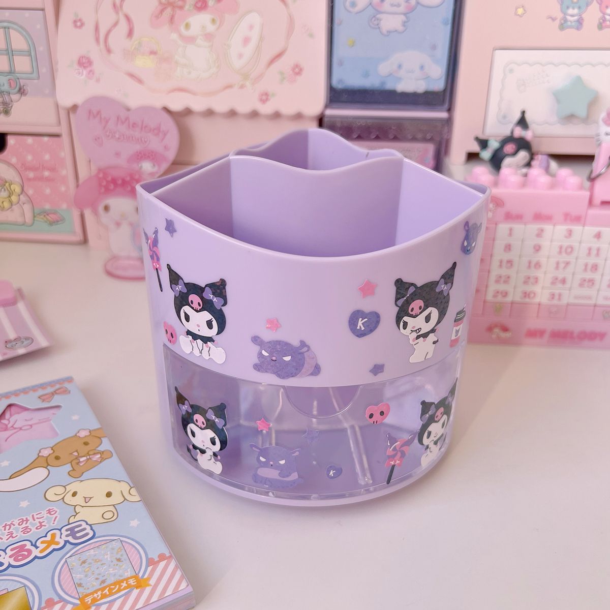 漫画かわいい玉桂犬クロミ大容量ペンホルダー学生オフィス透明デスクトップ回転可能収納ボックス