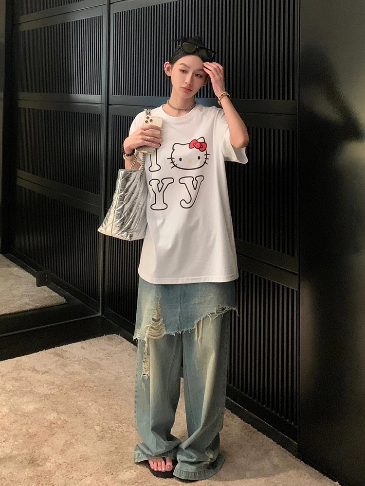 ハローキティ ハローキティ 半袖tシャツ レディース 夏新作 アメリカンレトロ ゆったり コットン 半袖 トップス トレンド