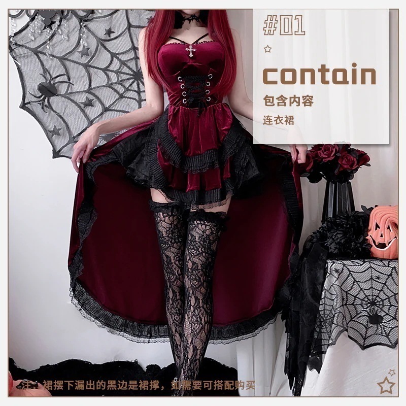欧米ダークゴシック風ハロウィンコスチュームレディースワンピース燕尾女魔女吸血鬼花嫁パフォーマンスウェア