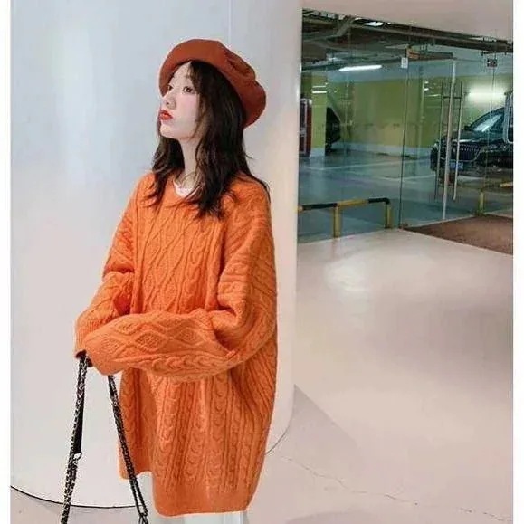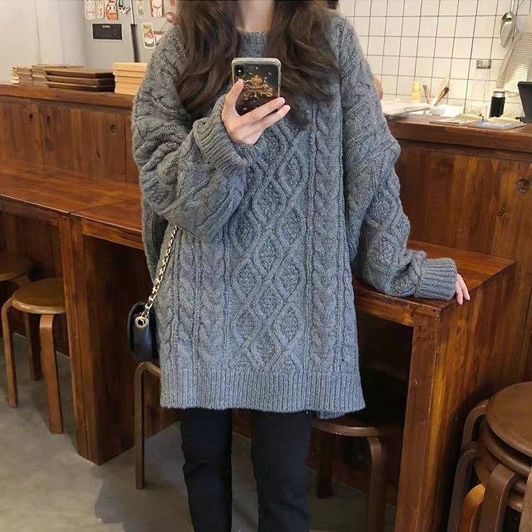 カシミヤタッチ ツイスト ゆったり 怠惰風 プルオーバーデザイン セーター カジュアル 百掛け セミロング 港風 ニットカーディガン