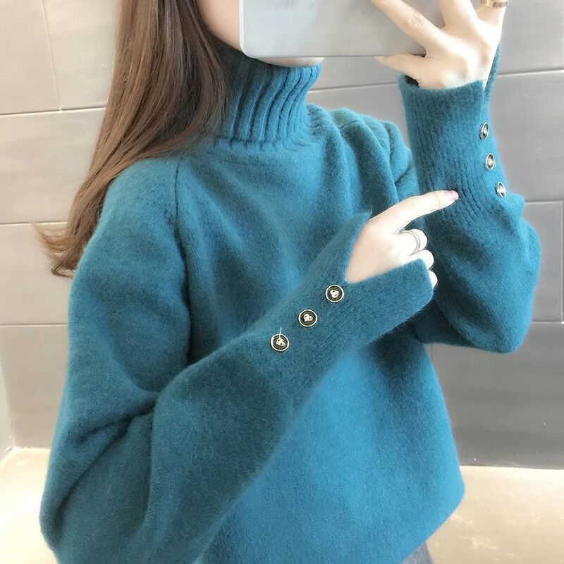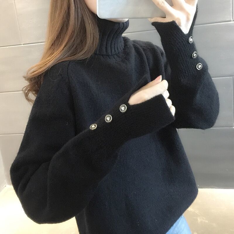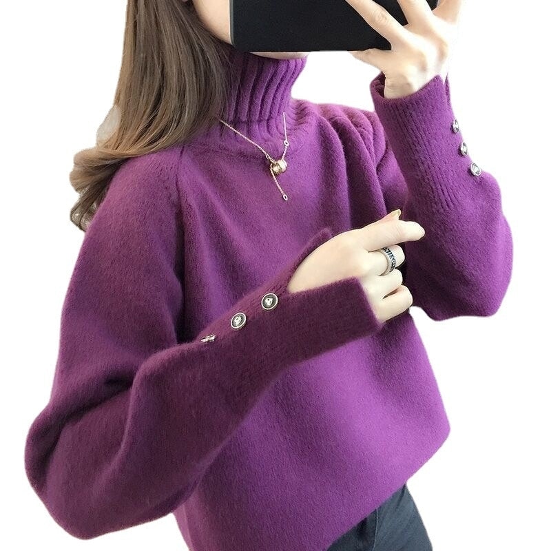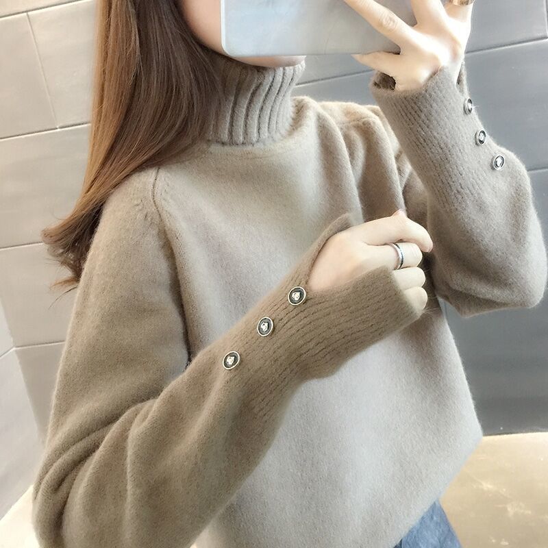 カシミヤタッチ タートルネックニット 裏起毛 厚手 汎用性が高い ニットカーディガン ゆったり シンプル ニットカーディガン