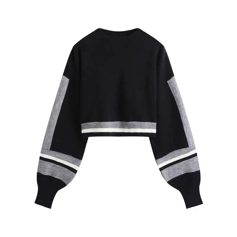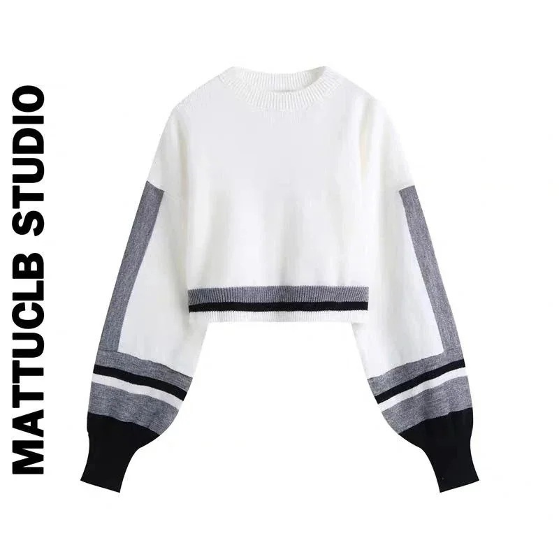 カシミヤタッチ 韓国ファッション パッチワーク コントラストカラー 精緻 セーター プルオーバーデザイン ゆったり アンダーウェア ゆったり ニットカーディガン ショート 長袖 トップス
