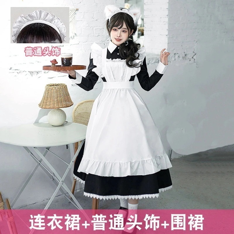 ハロウィン 日本のメイド服侍婦人服黒ロングスカート優しい女の子ロリータ長袖ロリータワンピースメイド服