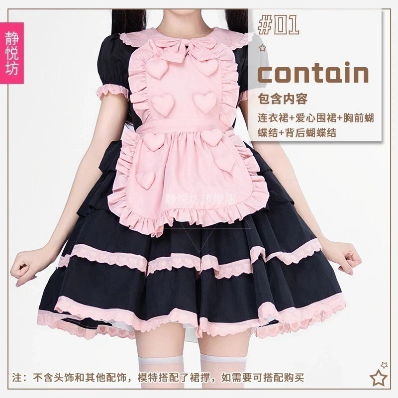 ハロウィン 黒ピンクのロリータワンピース甘い日系メイド服cos猫のハート優しい女の子プリンセスコスプレ衣装
