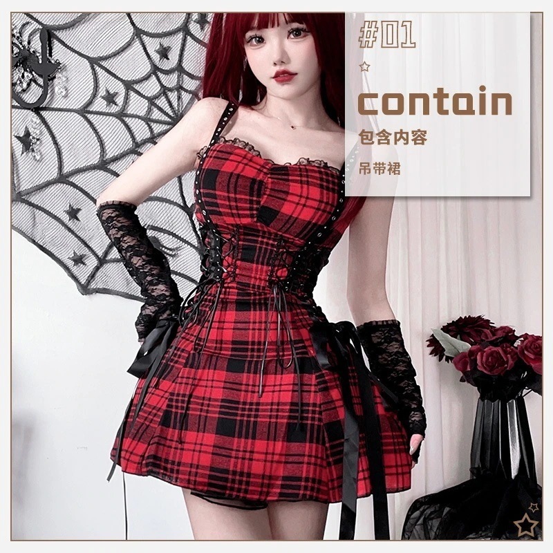 ハロウィン 欧米ダークゴシックサブカルレースギャル甘クールY 2 Kチェックロリータワンピース着