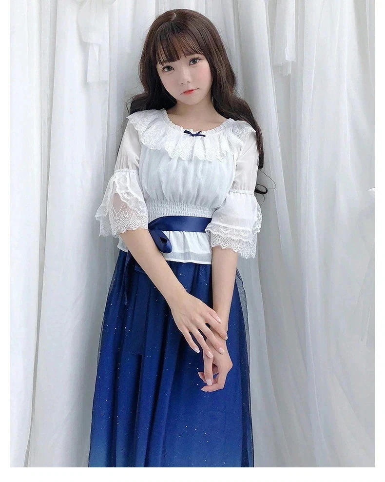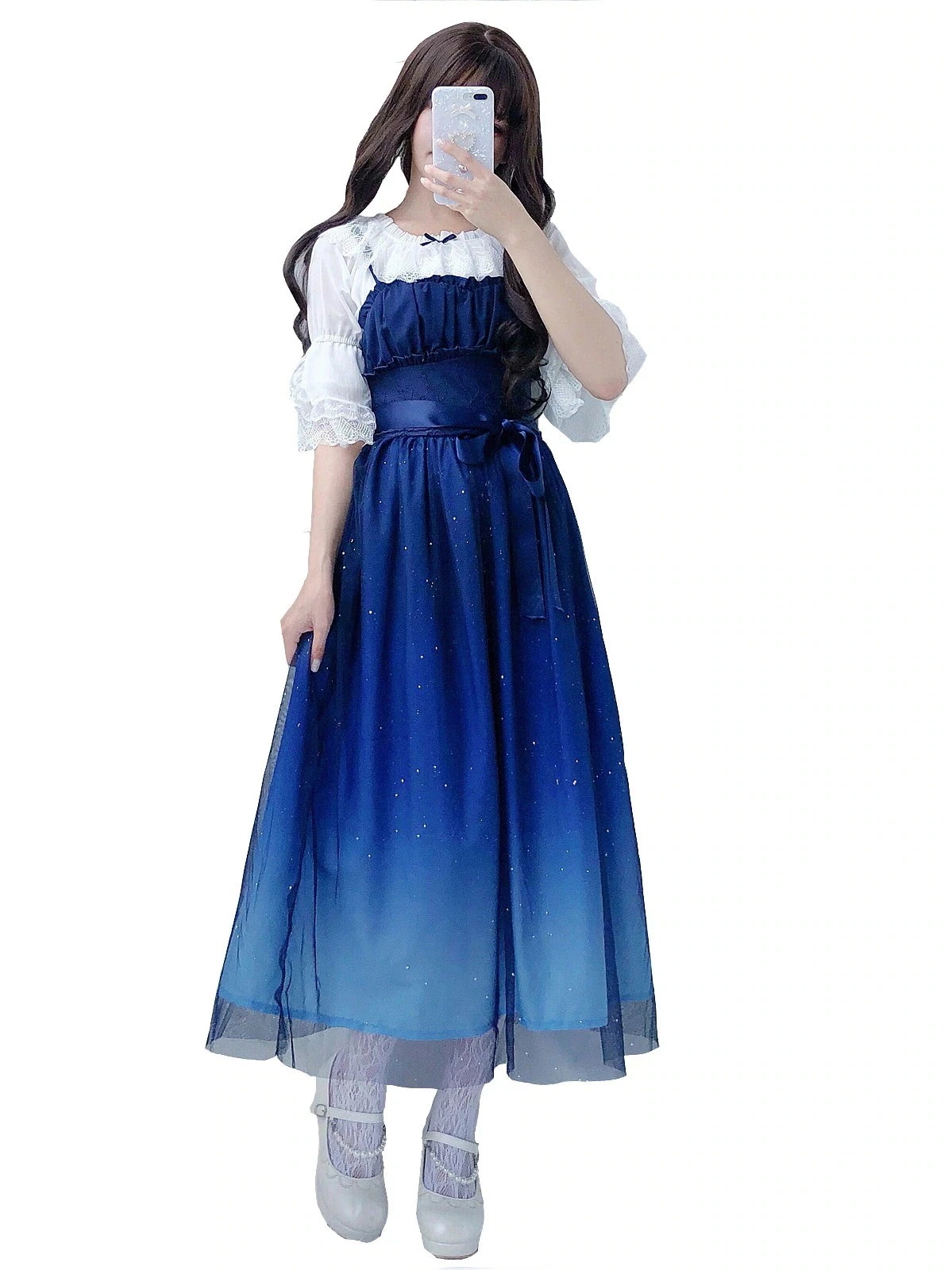 ハロウィン 夏の親友セット日系優しい女の子スカートlolita星空のグラデーションJSKキャミソールロリーチュールワンピース