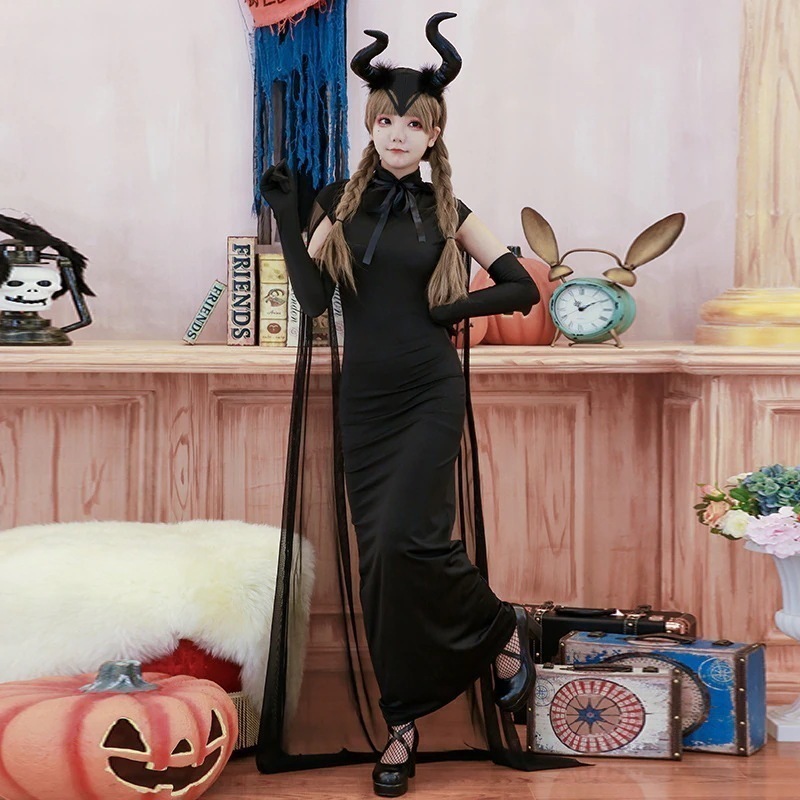 ハロウィン の成人衣装吸血鬼魔女鬼花嫁装セクシーチャイナドレス頭紗悪魔ゾンビ服ロングスカート黒