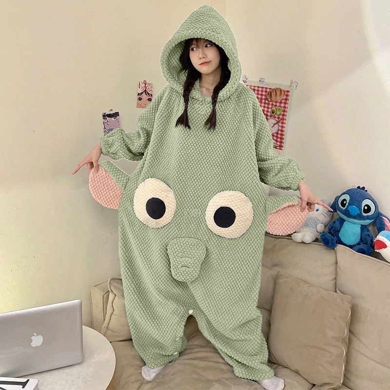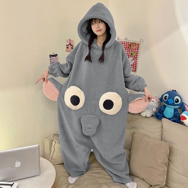 着ぐるみパジャマ 象 鼻 ワンピースパジャマ 女性用 冬 ベルベット 厚手 フード付き ホームウェア ハロウィン コスプレ