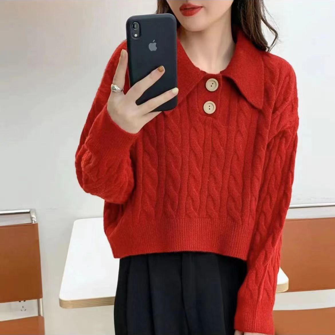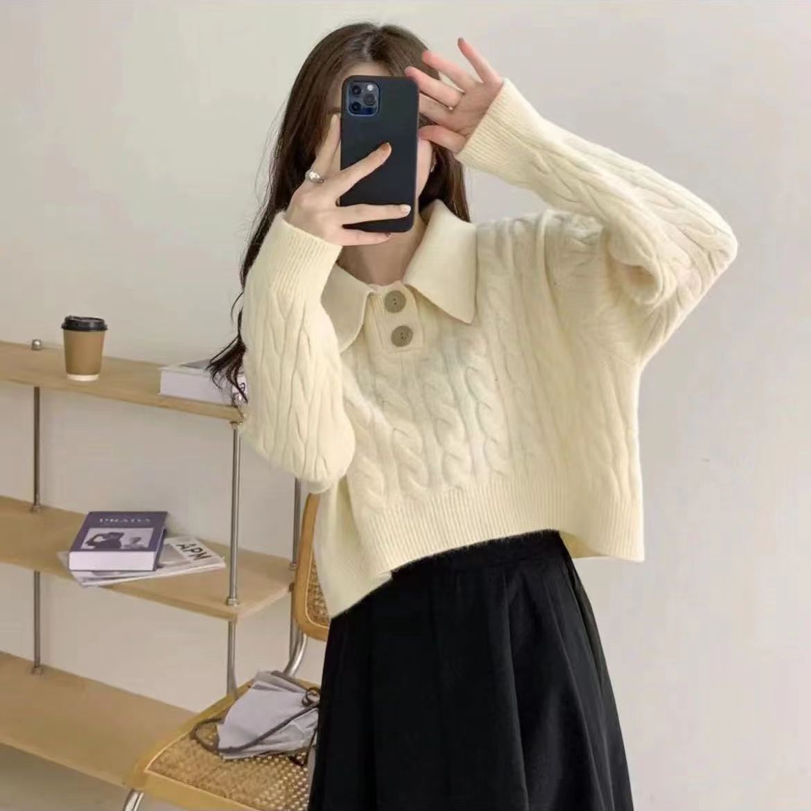 カジュアル ツイスト セーター 秋冬 おしゃれ 開き襟 インナー 長袖ニット レディース ゆったり 百掛け トップス プルオーバー ポロシャツ