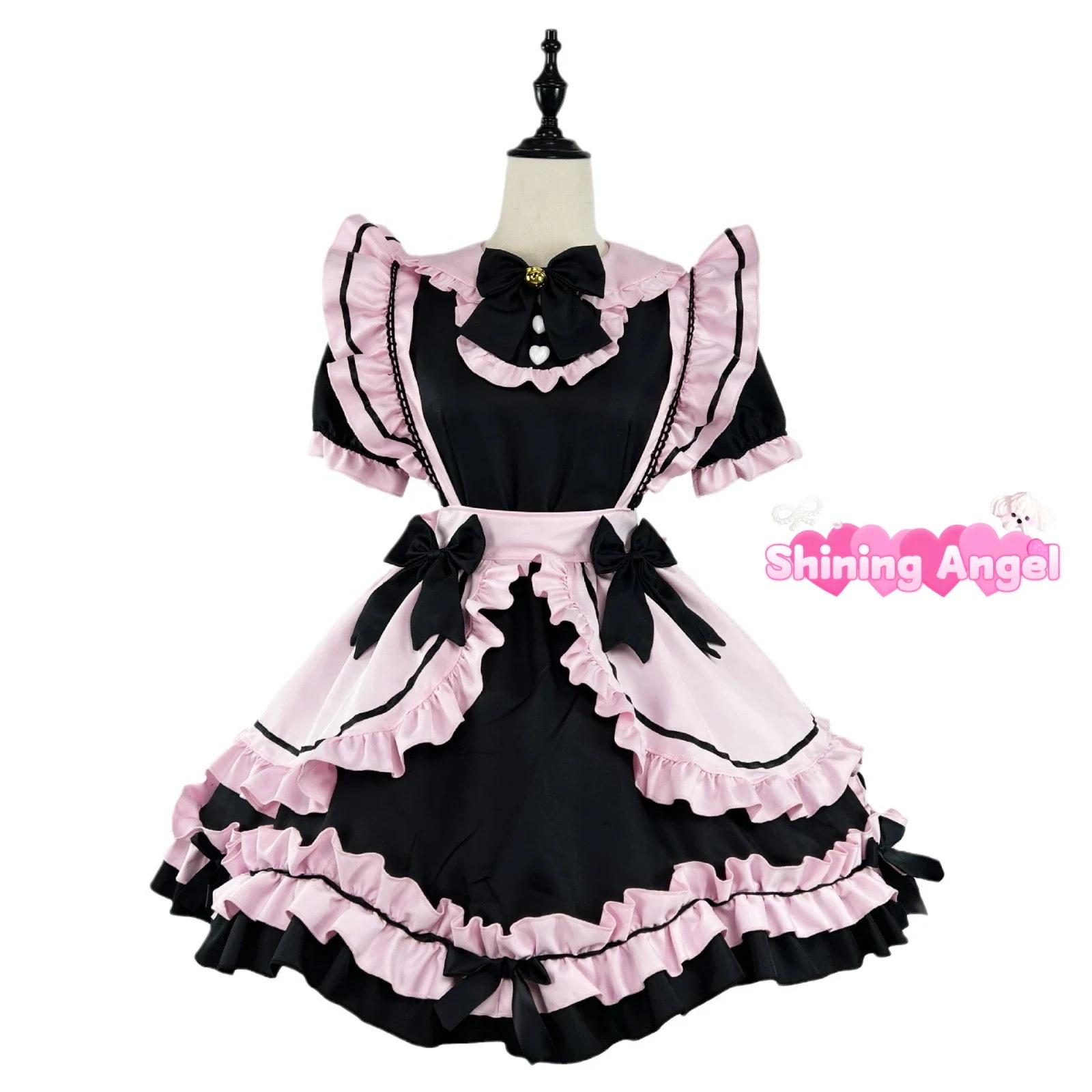新人気 かわいい メイド服 黒ピンクの猫耳髪飾り メイド服 ハロウィン 文化祭