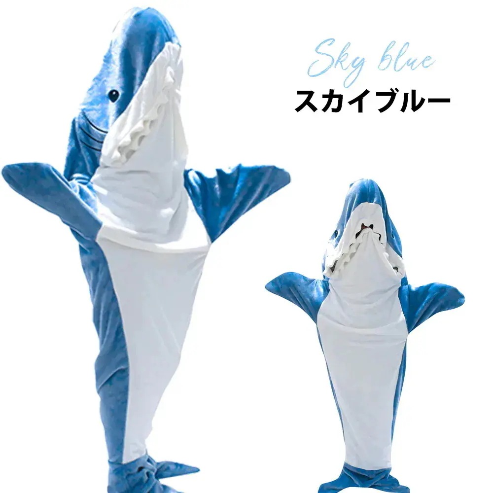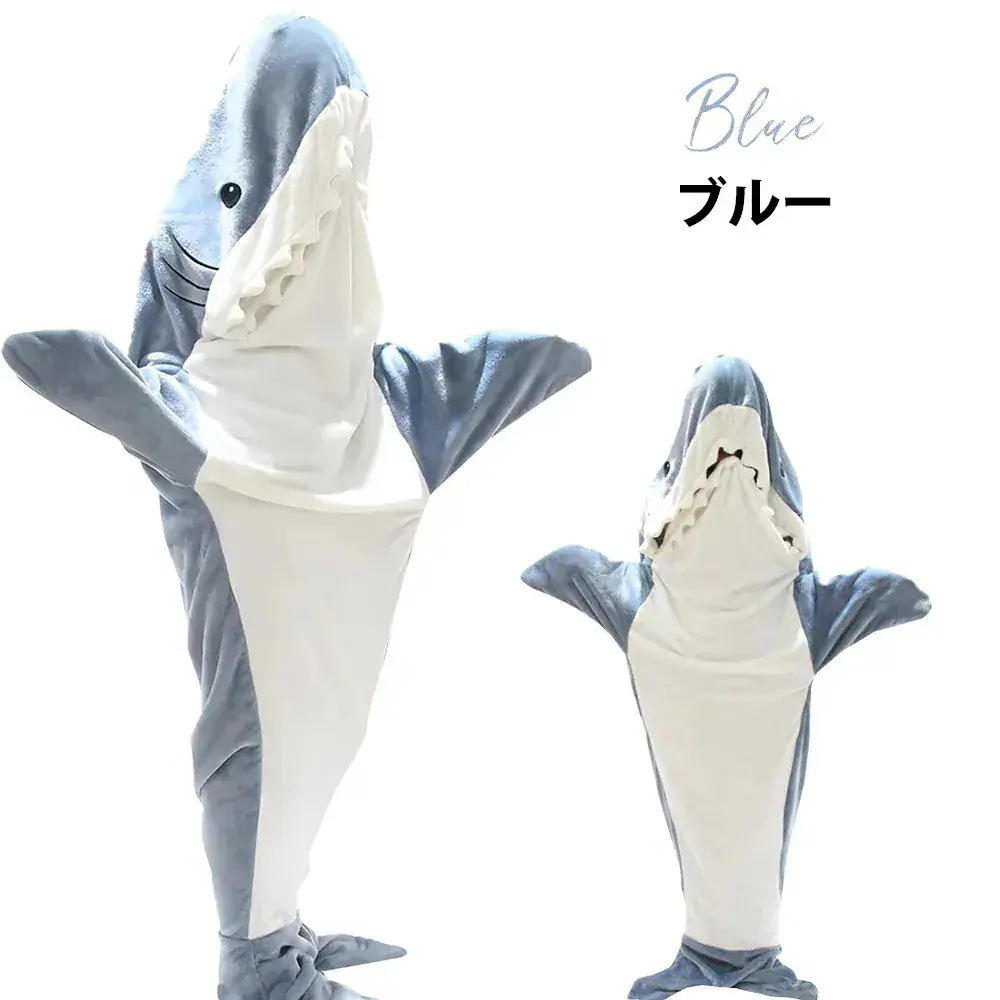 SNSで大人気 サメ寝袋 サメ 着る毛布 メンズ ブランケット サメ きぐるみ 大人用 子ども用 かわいい ふわふわ パジャマ ルームウェア 寝袋 暖かい 柔らかい 防寒 お昼寝 冷房対策