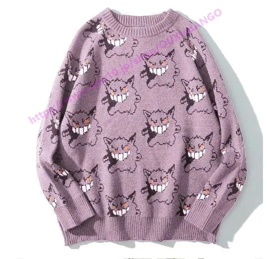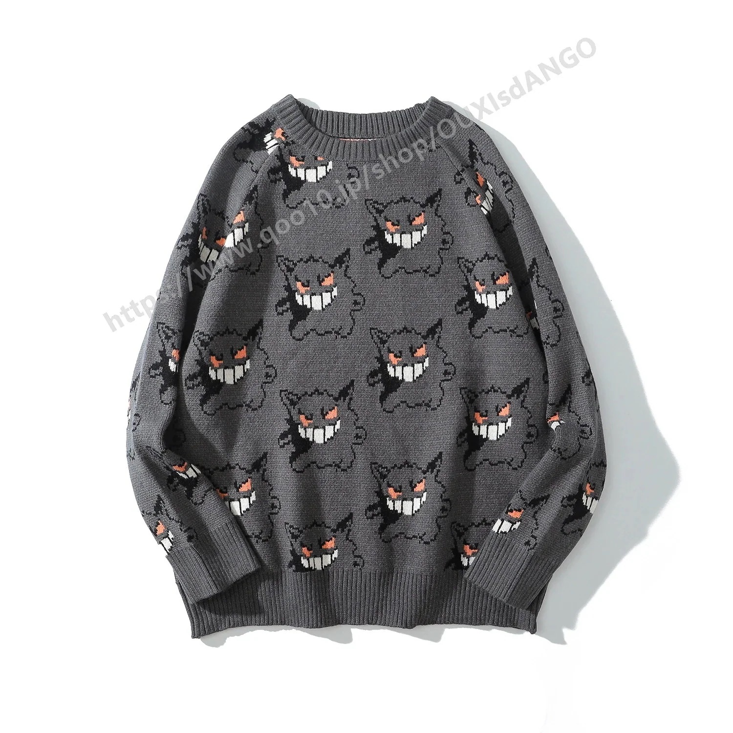 2024新作登場 ポケモン ニット セーター グレー ハロウィンカップル 原宿風可愛い秋冬服 ゲンガー ニット オルチャン 総柄