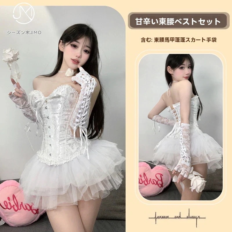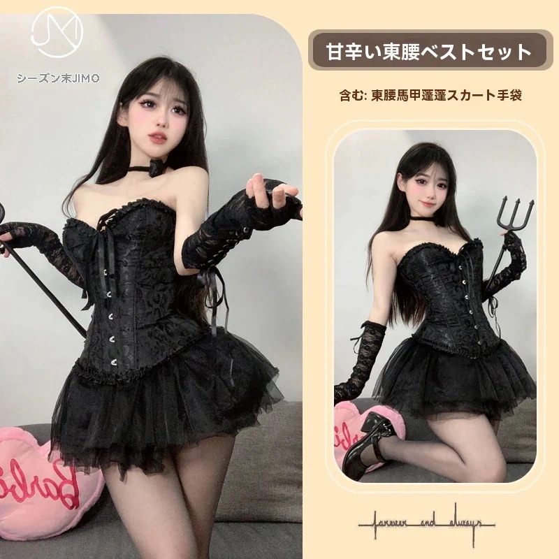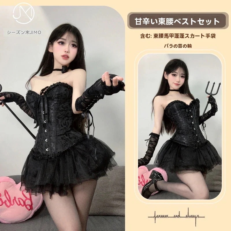 3 5nrm*** 2025.04.19 Color:ブラック Black-ウエストベスト+ボサボサ+手袋+ローズネック+靴下 5点セット Size:F(40-70kg)(+699円)オプション : Color:ブラック/Black-ウエストベスト+ボサボサ+手袋+ローズネック+靴下 5点セット / Size:F(40-70kg)(+699円)