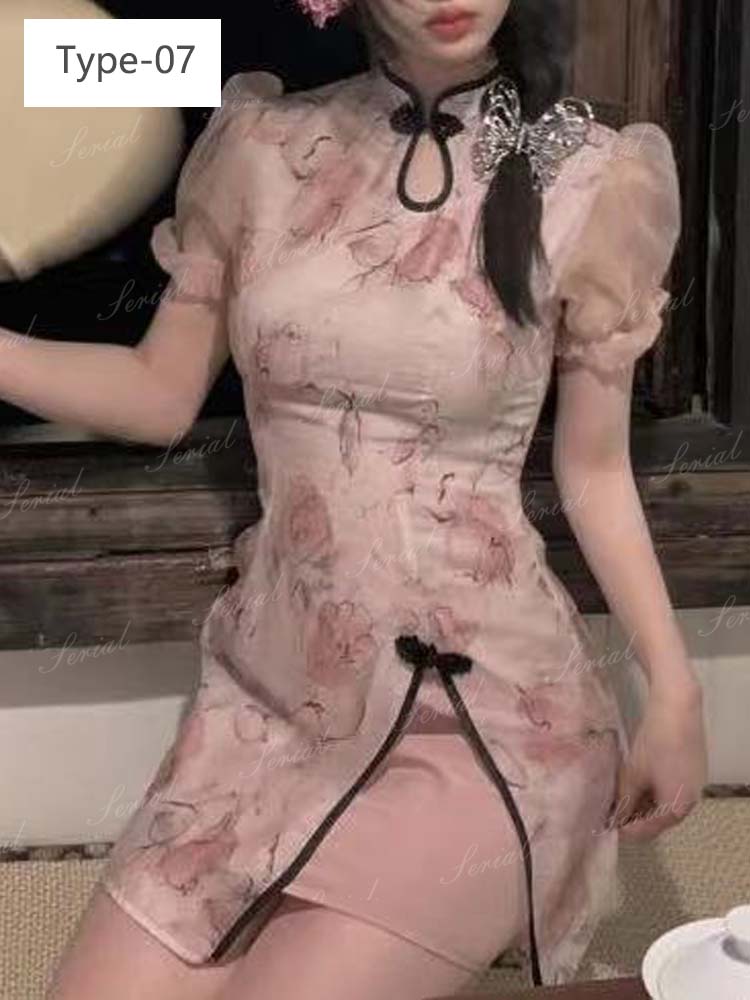 【急速に出荷】2023 新入荷 大人気改良チャイナドレス チャイナドレスワンピース 中国風チャイナドレス ワンピース キュートでセクシーチャイナドレス半袖 スカート女の子半袖ワンピース タイトスカート