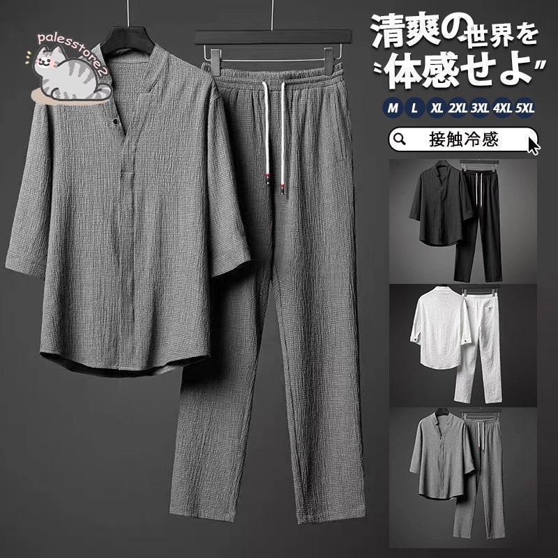 新品 大人気 接触冷感パジャマ メンズ 七分丈 セットアップ 半袖 春夏秋 柔らかく軽い 薄手の快適 七分袖Tシャツ 上下セット ルームウエア 高級紳士パジャマ 寝巻き 通気性