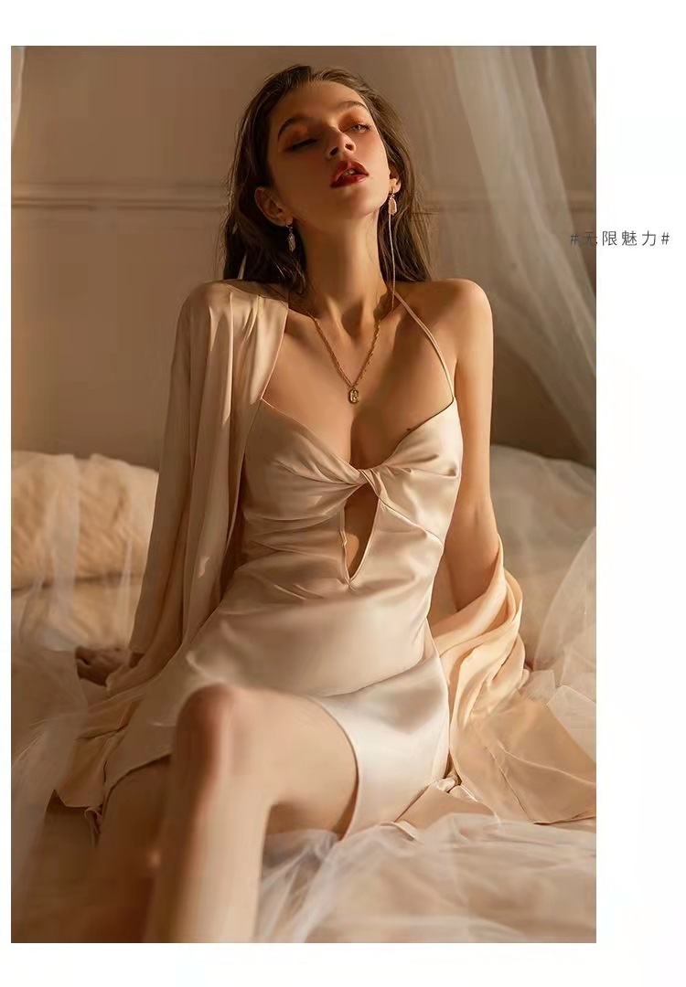 新しい セクシーなパジャマ女性アイスシルク夏の新しいスタイルのプライベートルームの誘惑純粋な欲望サスペンダーナイトガウン胸パッド付き美しいバックパジャマ
