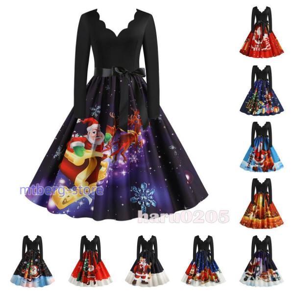 SNSで話題クリスマス ワンピース 雪柄 サンタ レディース 仮装 きれいめ コスプレ コスチューム 大人用 ガールズ Xmas ギフト パーティー イベント クリスマス衣装 演出服