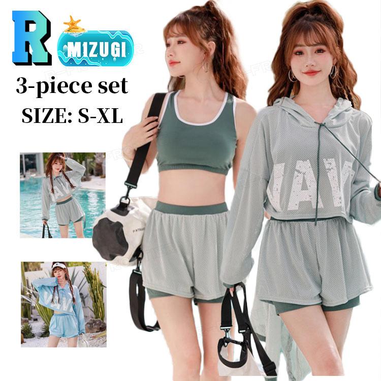 水着 高校生 レディース フィットネス 水着 体型カバー セパレート 露出控えめ ママ レディース レイヤード風 長袖 ラッシュガード Tシャツ タンキニ水着 ビキ