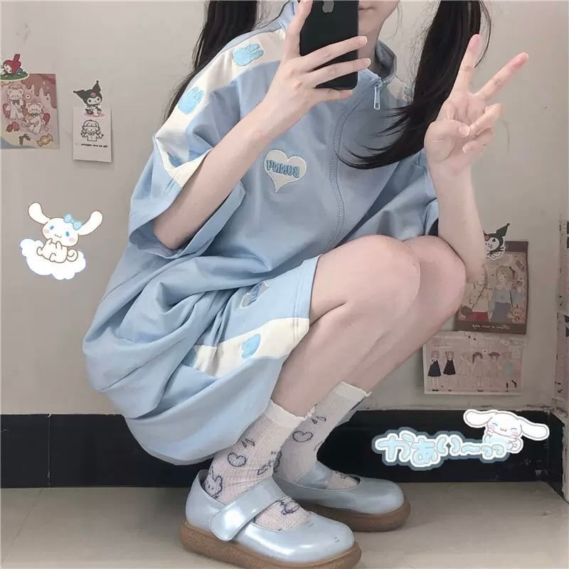 ゆるかわ ストリート ピンク上下2点セット お出かけ トラックウェア ジップ パーカー ハーフパン今日は30パーセント