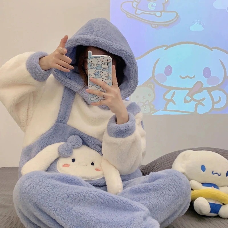 もこもこパジャマ 冬かわいい シナモロール レディース パジャマ くまちゃん 冬かわいい ルームウェア セットアップ 部屋着 上下セット 韓国ファッション期間限定30%
