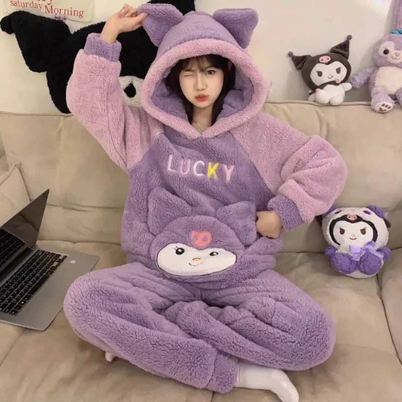 もこもこパジャマ レディース シナモロール マイメロディMelody ポチャッコPochacco Lotso クロミkuromi 冬かわいい くまちゃん 部屋着 上下セット ルームウェア セットアップ