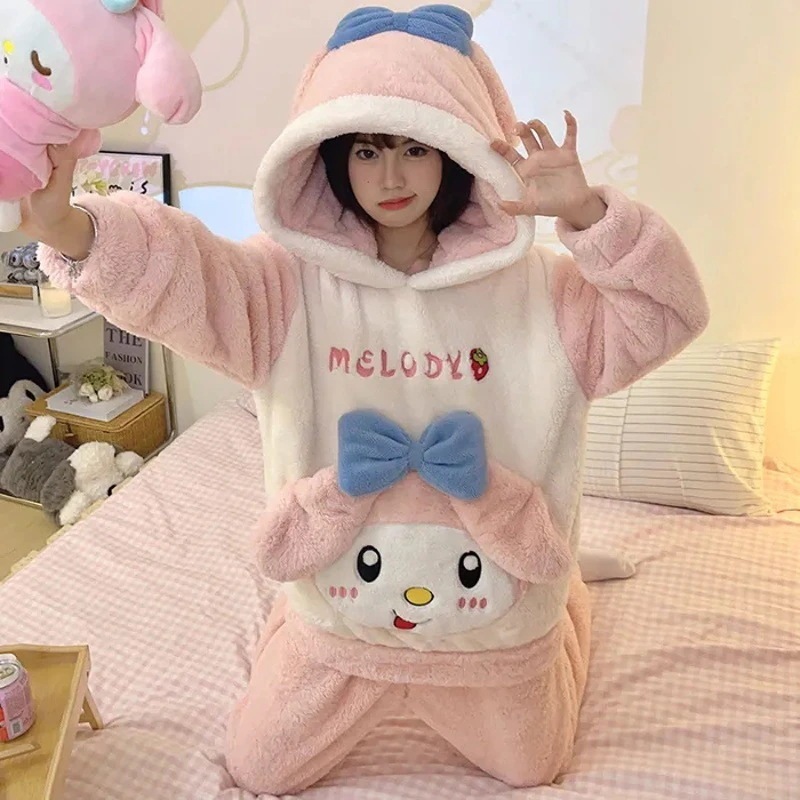レディース パジャマ もこもこ ポチャッコPochacco Lotso クロミkuromi シナモロール マイメロディMelody 冬かわいい くまちゃん 部屋着上下セット ルームウェア セットアップ