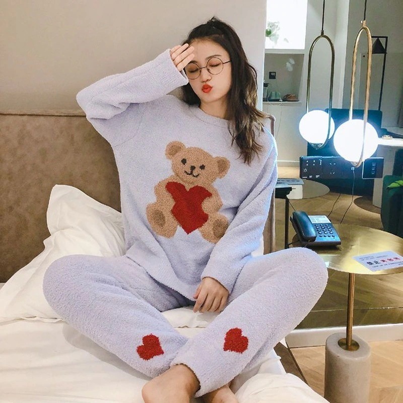 もこもこパジャマ レディース ルームウェア セットアップ くまちゃん モコモコ パジャマ 秋冬 韓国新品 上下セット 裏起毛期間限定30%
