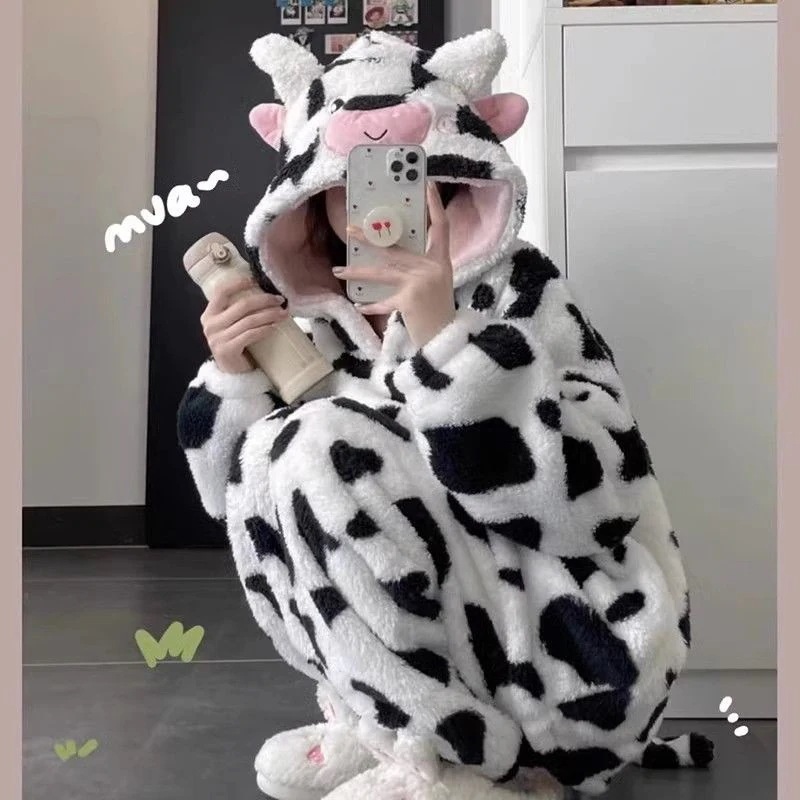 モコモコ パジャマ 上下セット にゅうぎゅう 柄 冬かわいい 部屋着 上下セット ルームウェア セットアップ 秋冬 韓国新品期間限定30%