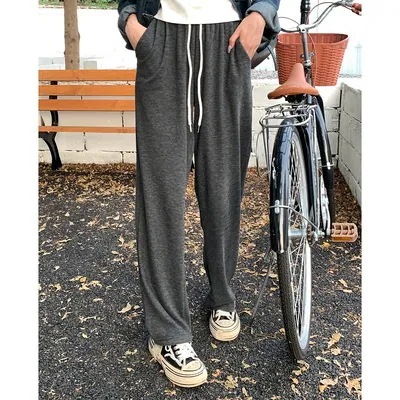 陸小団加絨毯親肌細見えワイド脚ゆるウロングパンツ2023春新作カジュアル百合パンツ女