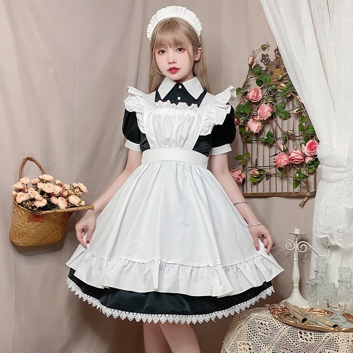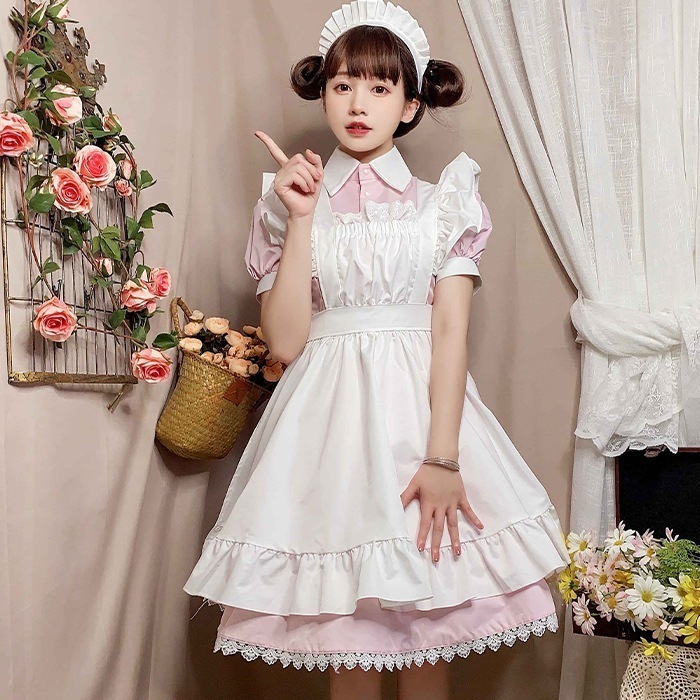 ハロウィン メイド服 コスプレ ワンピース エプロン ピンク ブルー ブラック 膝丈 ロング 半袖 クラシカル ハロウィンコスプレ メイド 衣装 洋館メイド