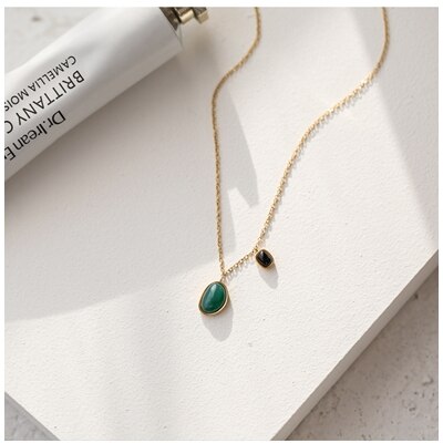 ニッチなデザイン 華奢 グリーンアゲート ダブルチャームネックレス 鎖骨チェーン雑貨福袋クリスマスプレゼント30%までに制限