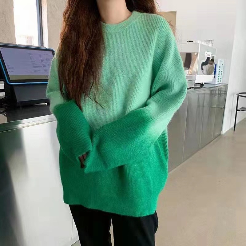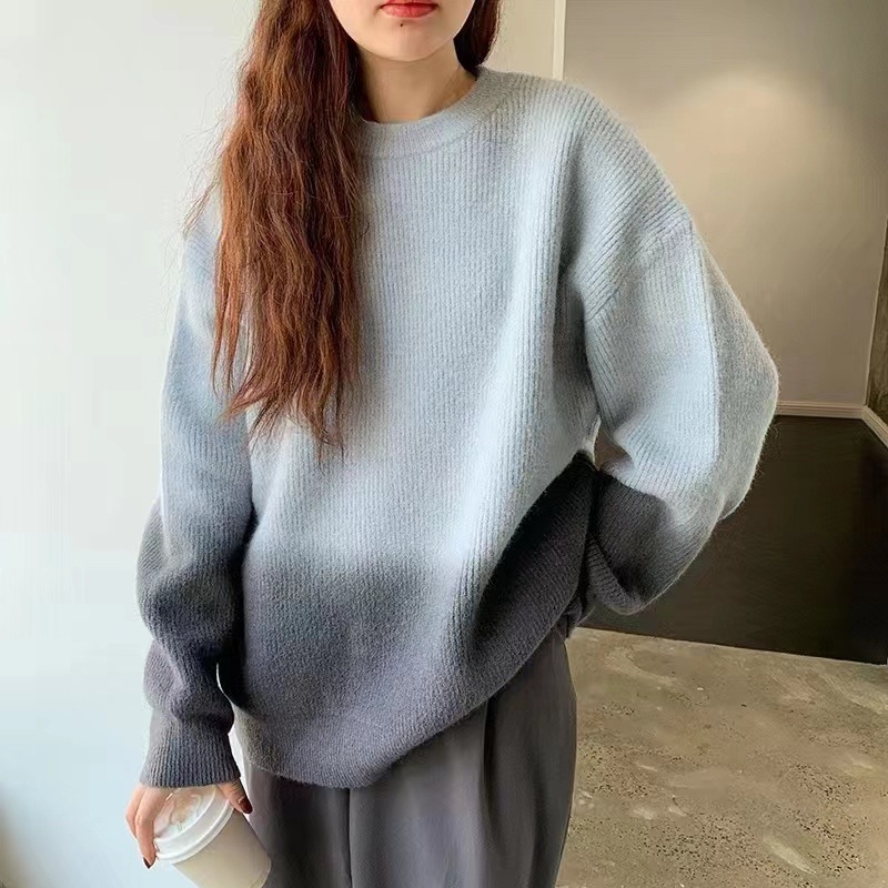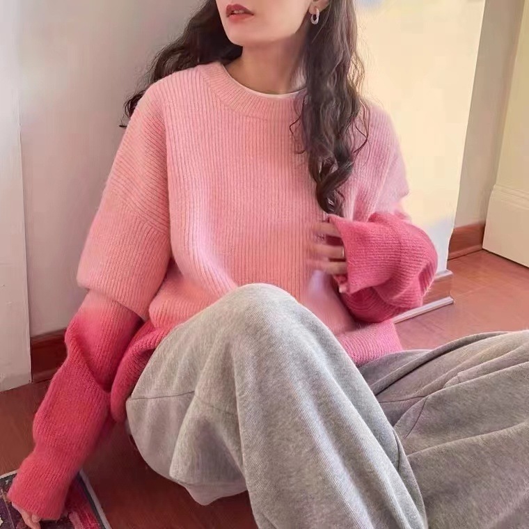 秋冬の新作網赤グラデーションニット韓国版セーター女性のゆったりとしたファッション百合のだるい頭の上着