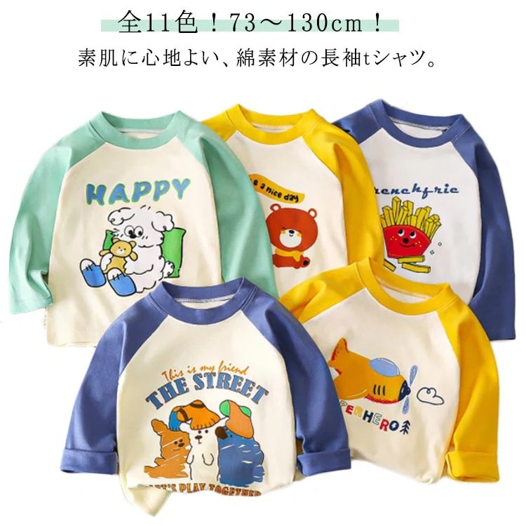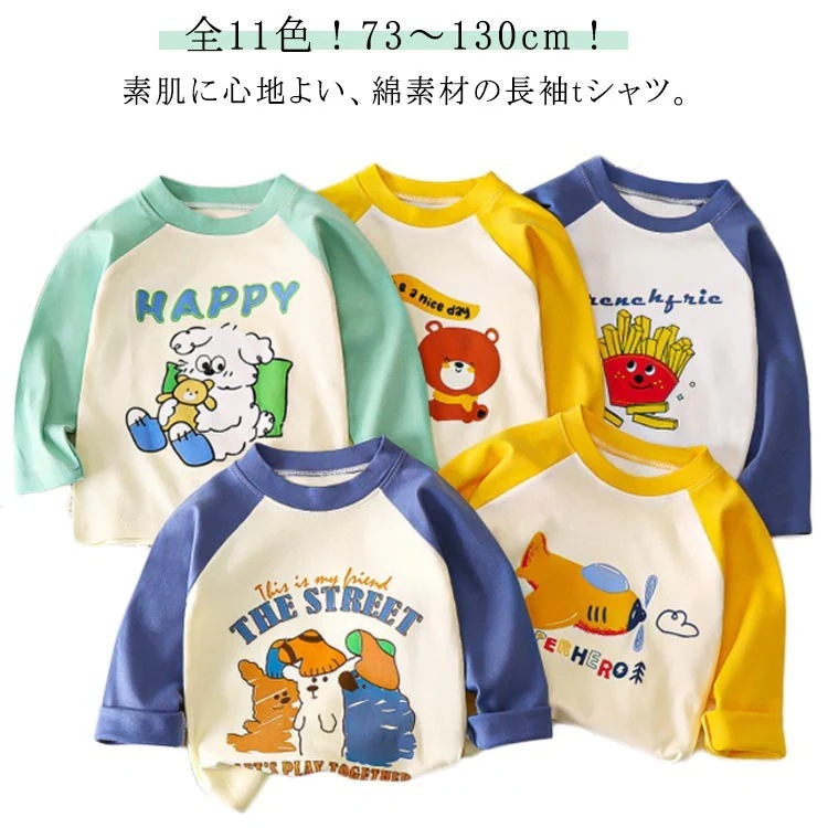 綿 長袖Tシャツ キッズ 子供服 女の子 男の子 トップス コットン ロンT ゆったり 子ども服 こども服 ロングTシャツ 73 80 90 100 110 120 130 男児 女児 長袖 キッズT