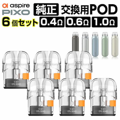 アスパイアAspire Pixo 純正 交換用 Pod カートリッジ 6個 セット 0.4Ω 0.6Ω 1.0Ω アスパイア ピクソー 純正 コイル 電子タバコ VAPE ベイプ コンパクト POD型 MTL