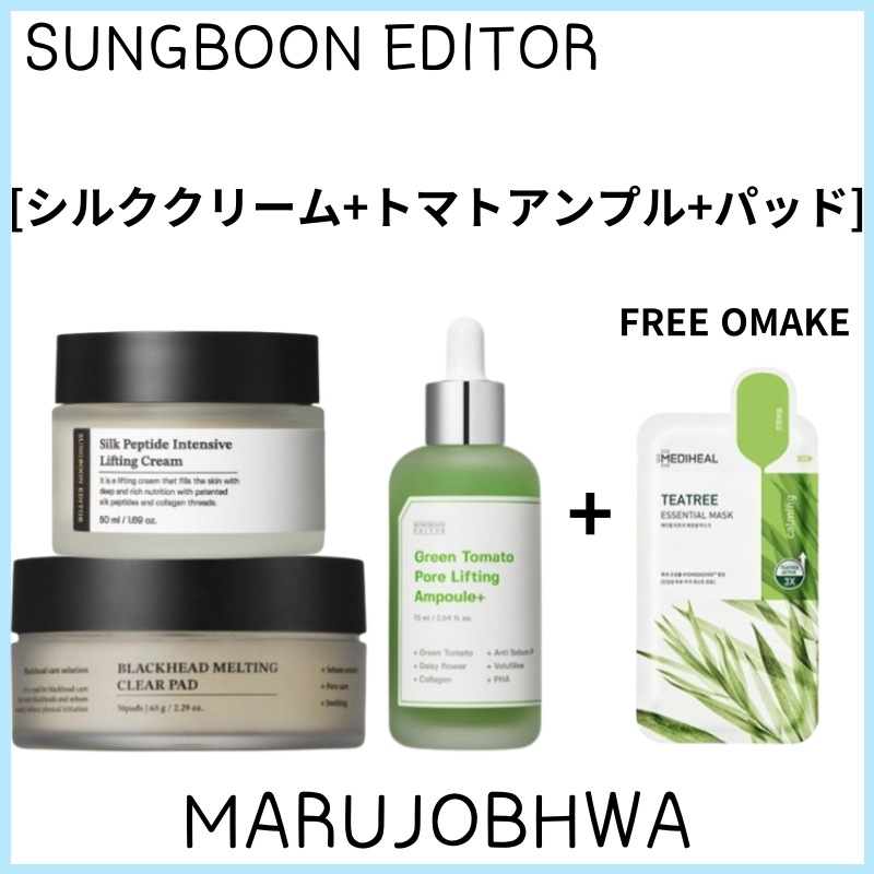 Sung Boon Editor[正規品]3種セット/ブラックヘッドメルティングクリアパッド30枚/シルクペプチドインテンシブリフティングクリーム 50ml/ グリーントマトポアリフティングアンプルプラス75ml