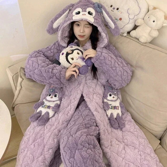 着ぐるみパジャマ 着ぐるみコスプレ ネグリジェ レディース 秋冬 厚手 レディース パジャマ クロミ レディース 三層 かわいい 暖かい ベルベット ホーム服セット アニメ コミック