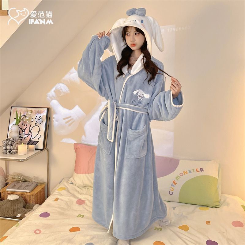 着ぐるみパジャマ クロミーフード付きバスローブ女性吸水速乾フランジパイルかわいいサンリオ浴衣バスタオル厚い寝衣長