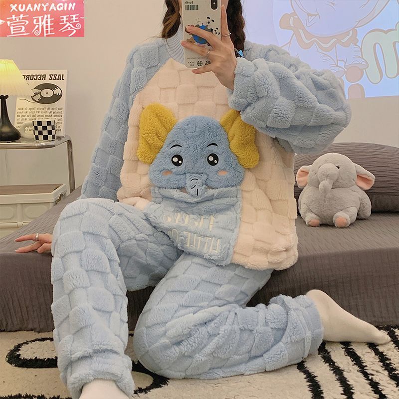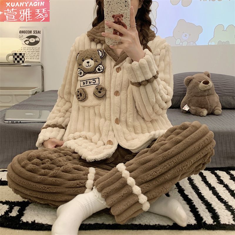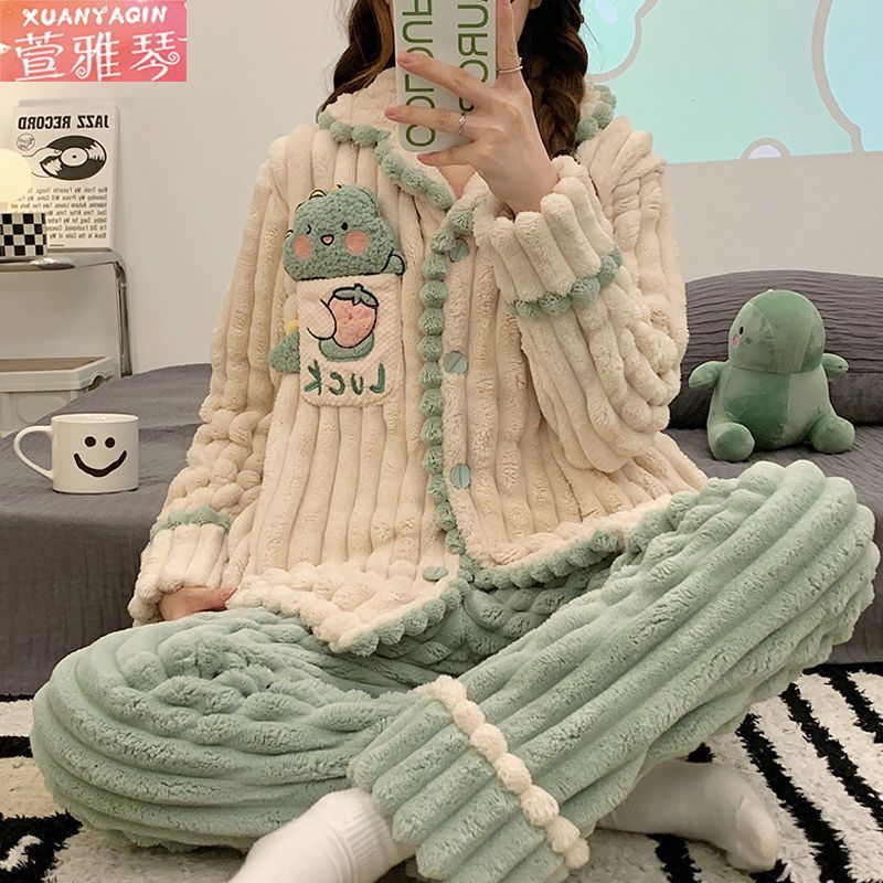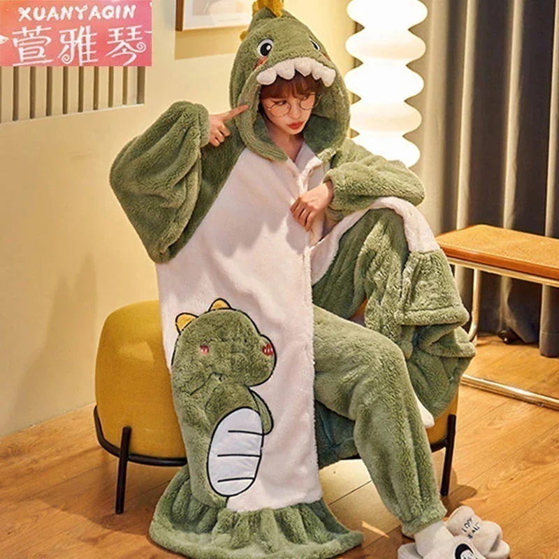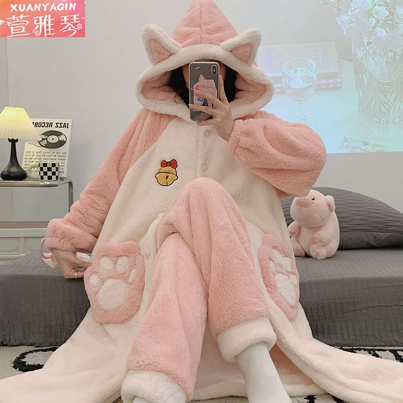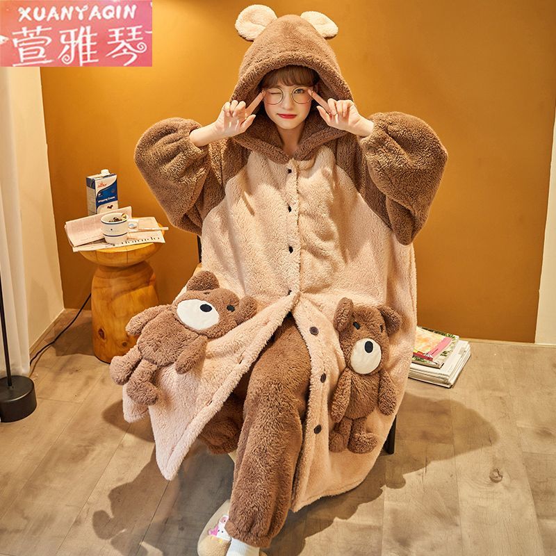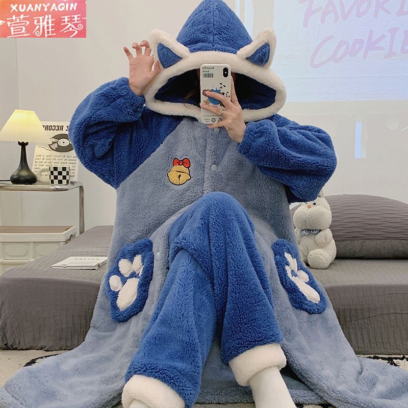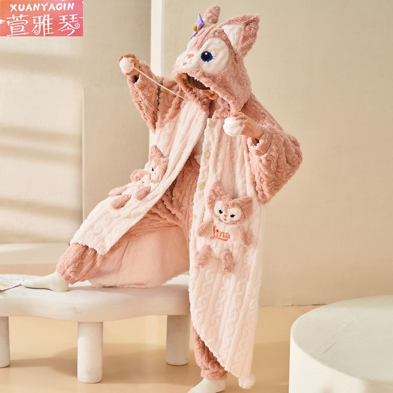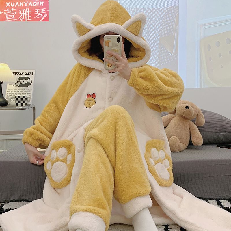 中長タイプのパチャ犬パジャマ女性冬アニメはモコモコバスローブベルベットの学生の大きなサイズの寝衣を厚くして家の服を着ることができる