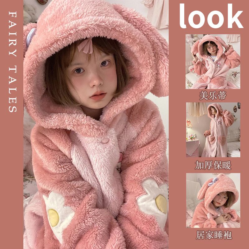 着ぐるみパジャマ 着ぐるみコスプレ パジャマメロディネグリジェ冬厚手のベルベットパジャマレディースフード付き2点セットルームウェア