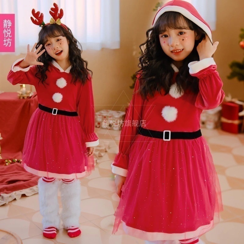 クリスマス子供服女子ヘラジカ長袖ワンピース赤いスカートパーティー衣装サンタクロース30%までに制限