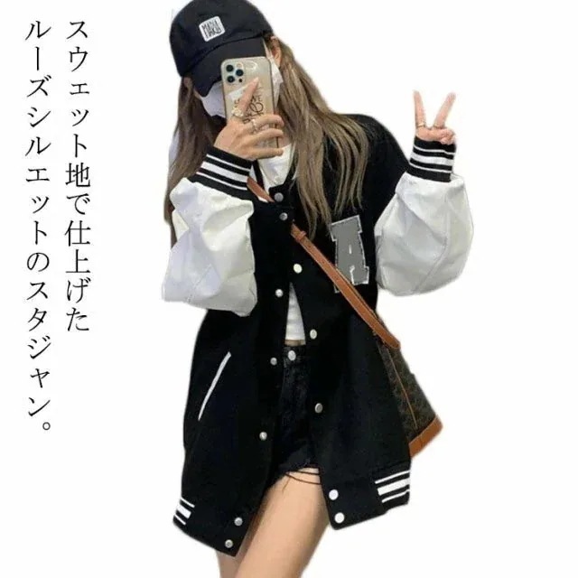 スタジャンレディーススタジアムジャケットスタジアムジャンパー配色切り替えラインビッグシルエットオーバーサイズジャンパーブルゾンカジュアルストリート英字ロゴライトアウタースウェットトレーナー男女兼用ペア