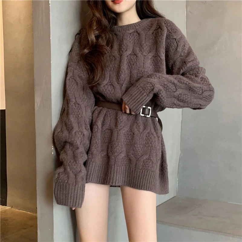 4色 長袖 ニット セーター ミディアム丈 レディース 春秋冬 厚手ゆったり ミニ ニットワンピース今日は30パーセント