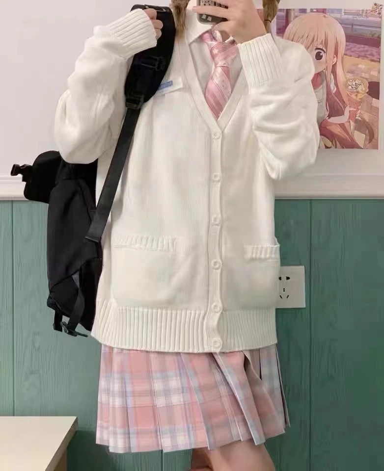 2024 春 秋 制服カーディガン ニットセーター ベーシックニット 学生服 高校生 前開き Vネック ゆったり 通学 カジュアル アウター レディース