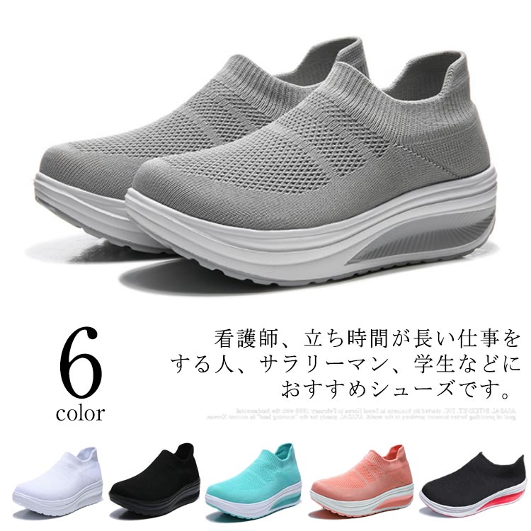 エアクッション ニットスニーカー 厚底スニーカー 姿勢矯正 船型底ナースシューズ レディース 運動 軽量 美脚 レディース スポーツシューズ レースアップ 履きやすい 歩きやすい ランニング