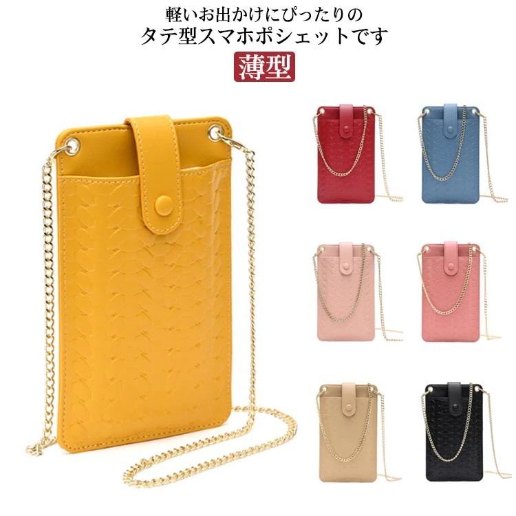 コンパクト PU ショルダーバッグ おしゃれ レディース 縦型 チェーン スマホポーチ スマホショルダー 薄型 携帯ポーチ レザー お財布 おしゃれ ポシェット シンプル 無地 かわいい 斜めがけ