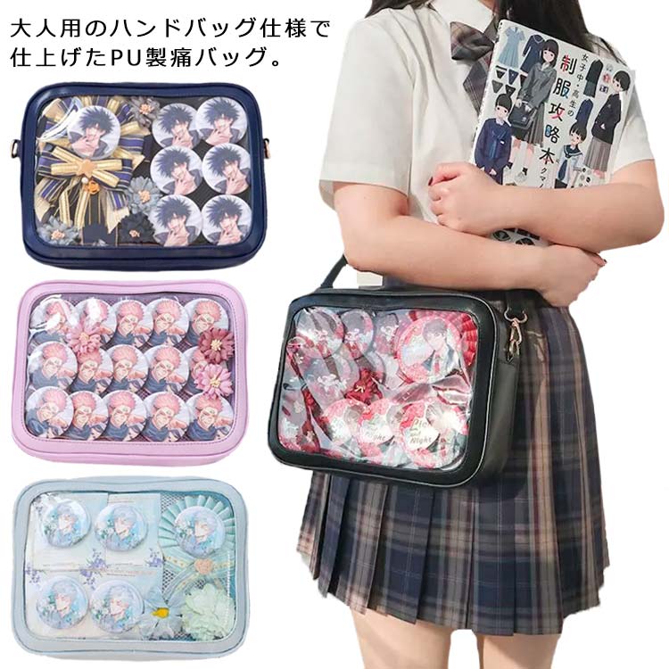ショルダーバッグ ショルダー 痛バ バッグ カジュアル透明 トート ビニールバッグ 痛バ ポーチ 便利 トート 見せバッグ 斜めがけ スクール 女子 ビニール バッグ 中学生 高校生 通学 高校通学カ