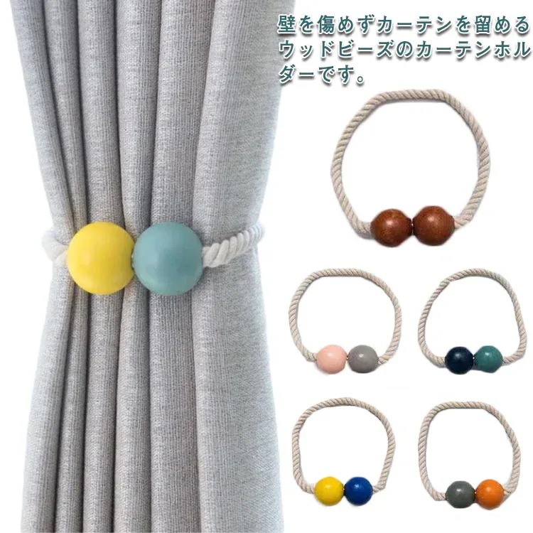 マグネット ホルダー タッセル カーテンタッセル2本セット ウッドビーズ カーテンタッセル カーテン カーテンホルダー ふさかけ 留め具 アクセサリー インテリア シンプル ドレープ ウッドボール